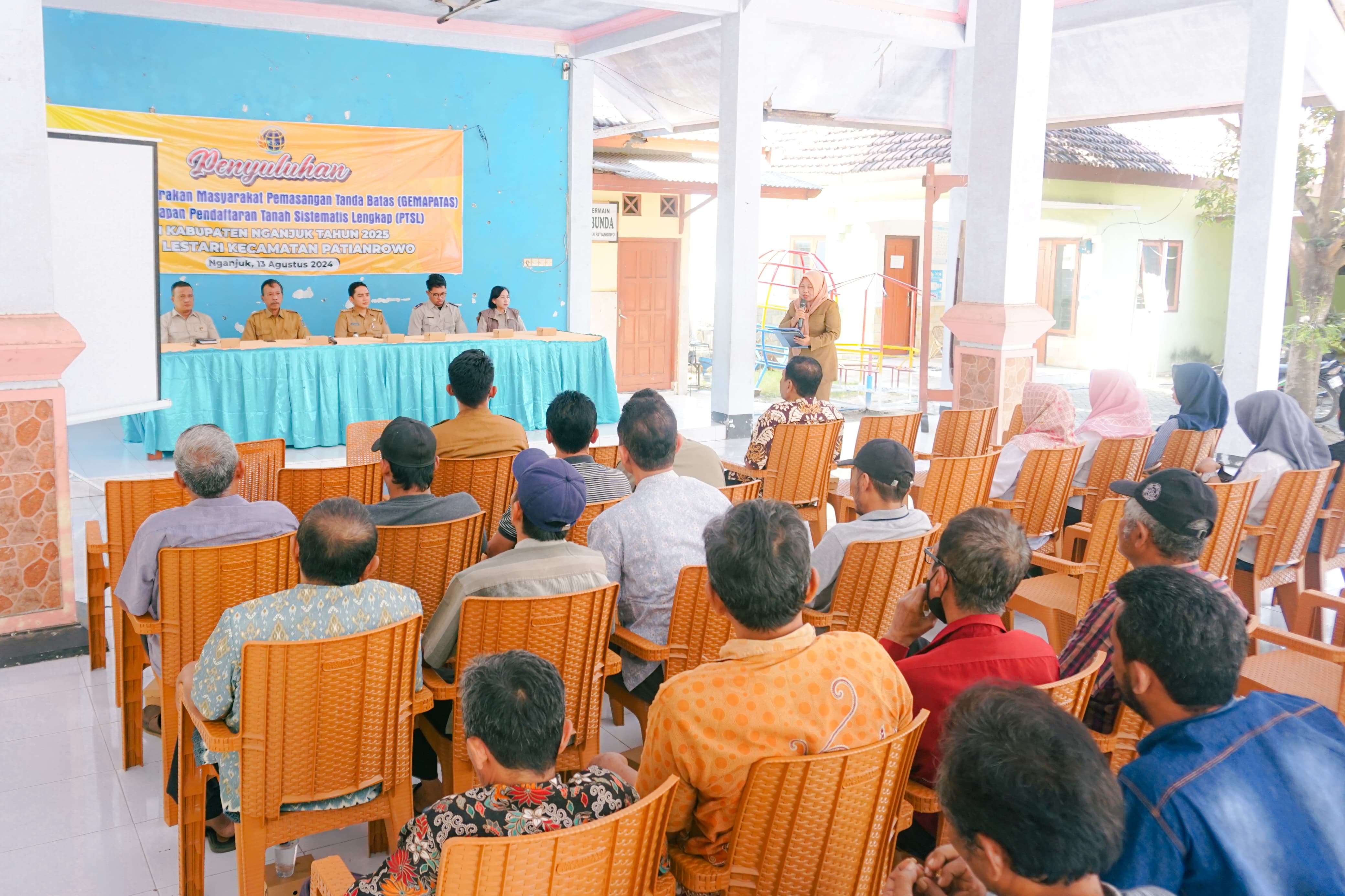 Dalam upaya meningkatkan kepastian hukum dan pengelolaan tanah, Desa Lestari melaksanakan penyuluhan tentang Gerakan Masyarakat Pemasangan Tanda Batas serta persiapan Pendaftaran Tanah Sistematis Lengkap (PTSL). Acara ini dihadiri oleh warga desa, tokoh masyarakat, Camat Patianrowo dan perwakilan dari Badan Pertanahan Nasional (BPN).