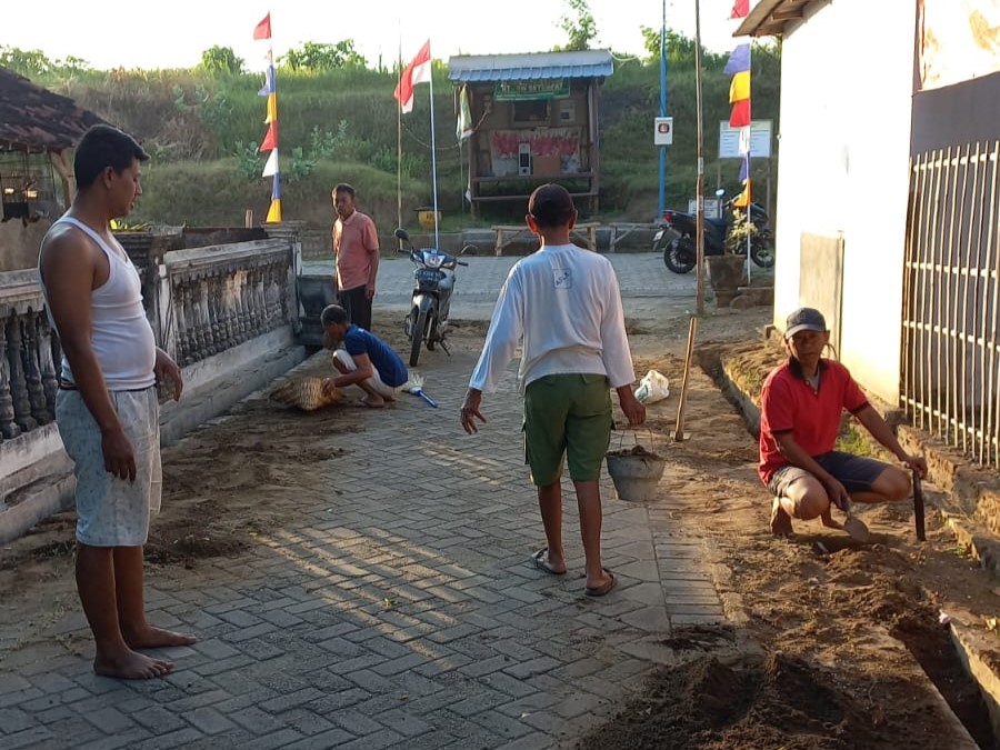 Warga dibagi ke dalam kelompok-kelompok kecil untuk melakukan berbagai tugas pembersihan di seluruh area desa. Mereka membersihkan jalanan, saluran drainase, dan mengecat gapura. Kegiatan ini juga melibatkan pemuda setempat. Para ibu rumah tangga juga tak ketinggalan dalam kegiatan ini, mereka bergotong royong menyiapkan makanan dan minuman untuk para peserta kerja bakti.