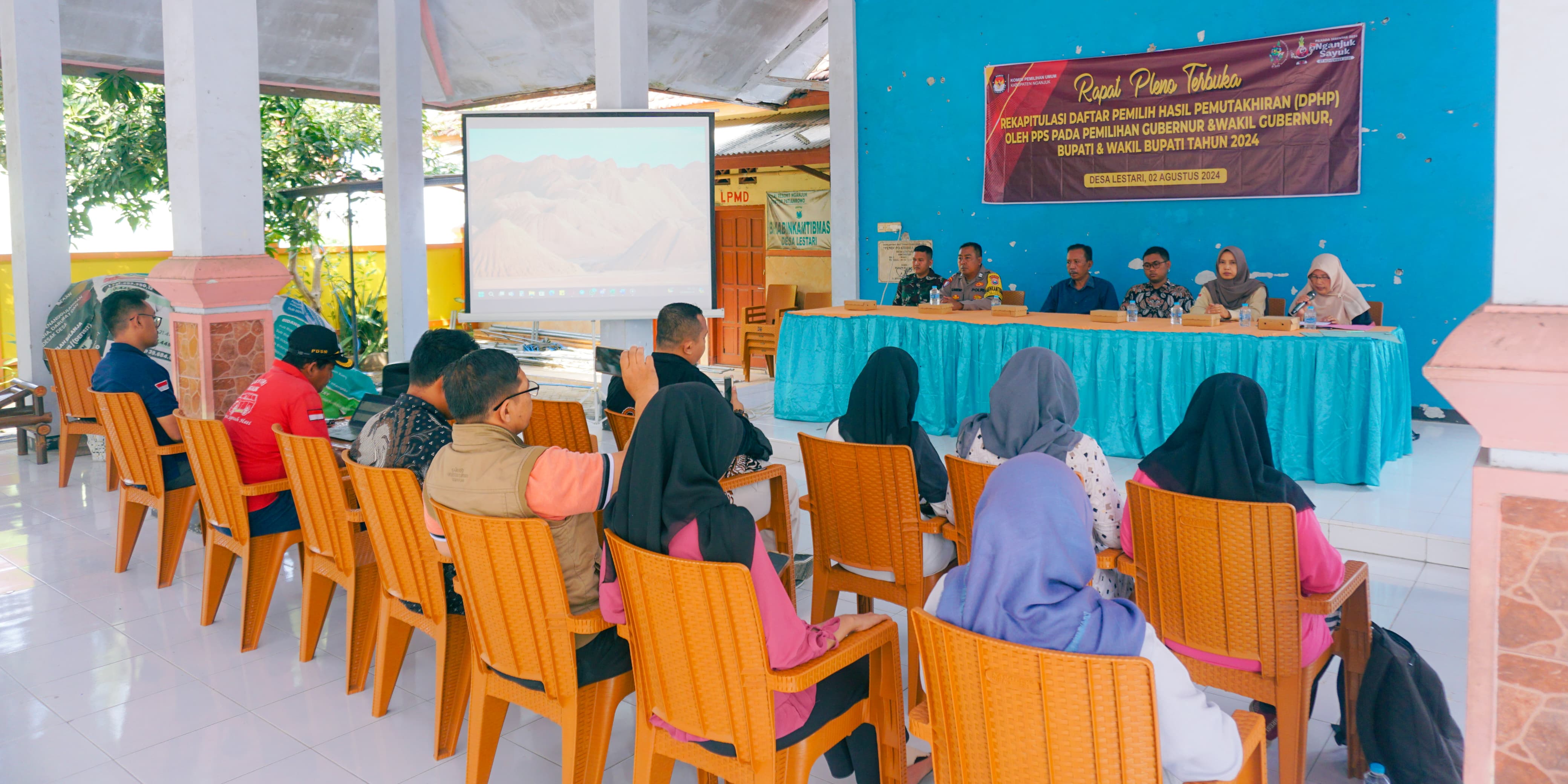 Pelantikan Sekaligus Bimtek bagi Para KPPS Pemilu 2024 di Pendopo Kantor Desa Lestari: Menjaga Integritas dan Transparansi Pada tanggal 7 November 2024, tepat pukul 19:42, Pendopo Kantor Desa Lesta