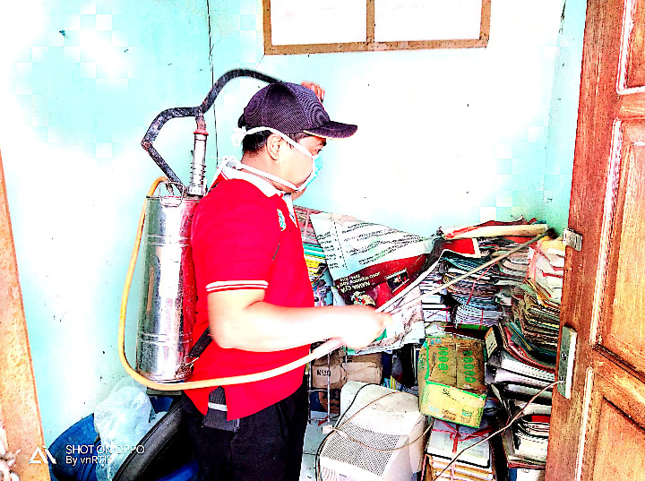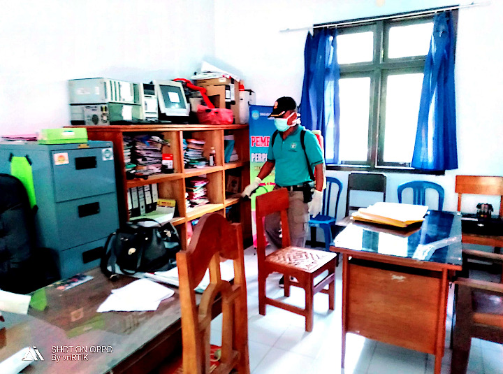 Semprot Disinfektan dilakukan oleh Puskesmas Patianrowo di kantor kecamatan patianrowo